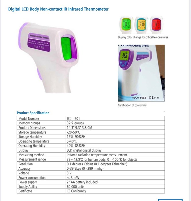 - ניתן למדוד את טמפ’ הגוף וגם את טמפ’ החדר, פני השטח, מזון, מים באמבטיה,חלב ועוד.