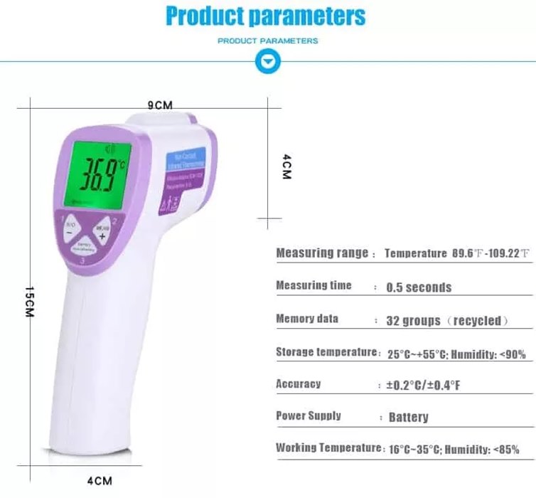 מדחום דיגיטלי ללא מגע ישירבטכנולוגיית אינפרא אדום מתקדמת