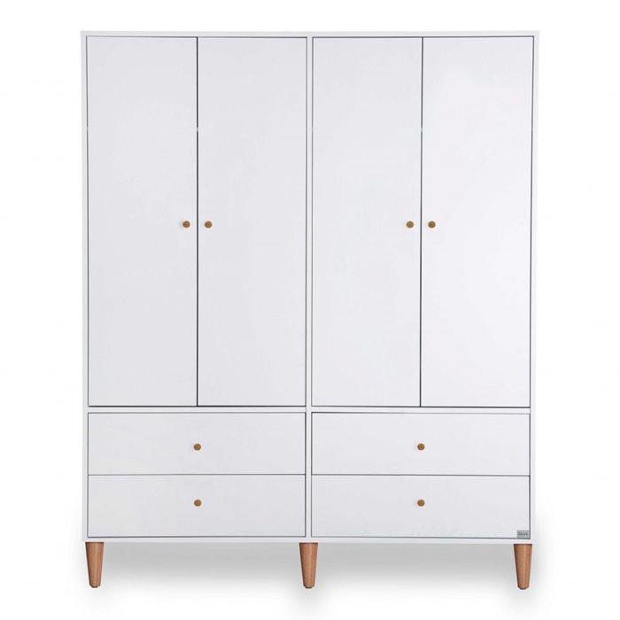 ארון הוא פריט משמעותי בחדר ולכן המשימה של המעצבים שלנו היתה לפתח ארון גדול ולא מאיים – ואכן ניתן לראות כי העיצוב המינימסליטי מצליח לשמור על נינוחות ולהשאיר את החדר מאוורר. ארון שוהם עם 4 דלתות מעוצב כך שניתן להשתמש בו ל 2 ילדים ולהעניק סמטריה מושלמת בו זמנית. הפשטות הנקייה של הארון בשילוב ידיות לבנות נוחות המשתלבות בשקט מייצרות עיצוב עכשווי על זמני. העיצוב לא מעמיס ומעניק לפשטות יתרון בולט.הארון מתאים לסגנונות עיצוב רבים והוא מתוכנן בצורה חכמה. סידור הארון הפנימי גמיש וניתן להתאים אותו לצרכים המתפתחים של התינוק וההורים.