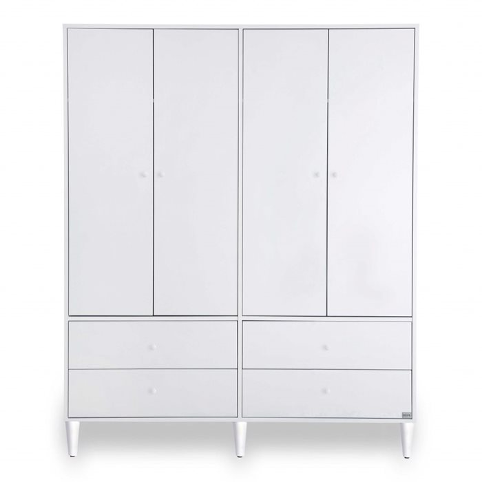 ארון הוא פריט משמעותי בחדר ולכן המשימה של המעצבים שלנו היתה לפתח ארון גדול ולא מאיים – ואכן ניתן לראות כי העיצוב המינימסליטי מצליח לשמור על נינוחות ולהשאיר את החדר מאוורר. ארון אודם עם 4 דלתות מעוצב כך שניתן להשתמש בו ל 2 ילדים ולהעניק סמטריה מושלמת בו זמנית. הפשטות הנקייה של הארון בשילוב ידיות לבנות נוחות המשתלבות בשקט מייצרות עיצוב עכשווי על זמני. העיצוב לא מעמיס ומעניק לפשטות יתרון בולט.הארון מתאים לסגנונות עיצוב רבים והוא מתוכנן בצורה חכמה. סידור הארון הפנימי גמיש וניתן להתאים אותו לצרכים המתפתחים של התינוק וההורים.