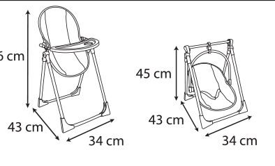 כיסא אוכל לבובה ובובת תינוק בעל 4 מצבים: כיסא אוכל לבובה, נדנדה, מנשא וטרמפולינה.