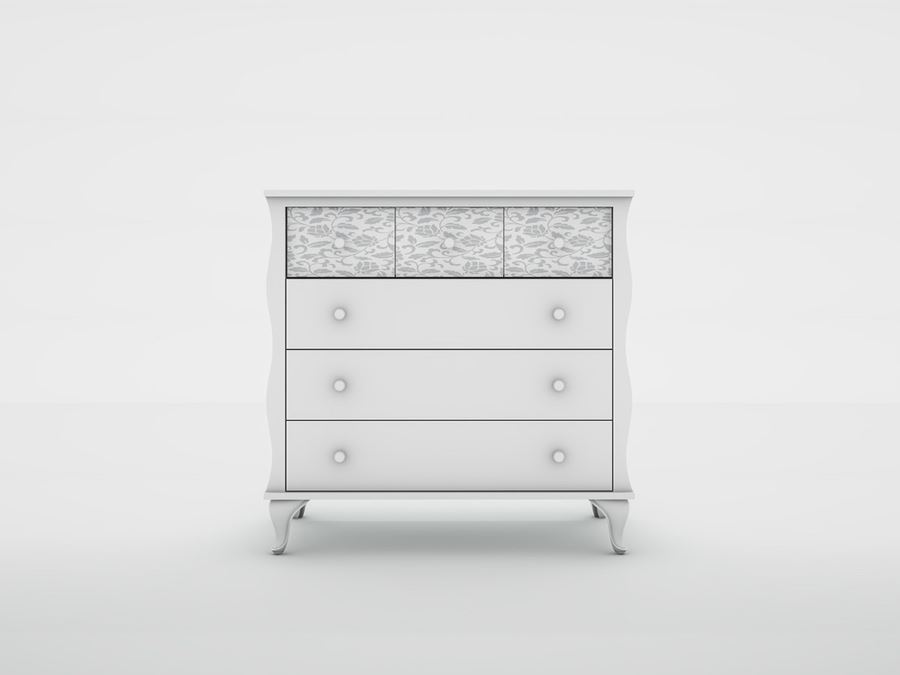 - שידה דגם בל ניתן להזמין: לבן חלק / לבן עם עיטור פרחים ב3 מגירות עליונות