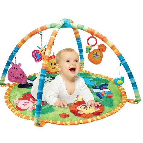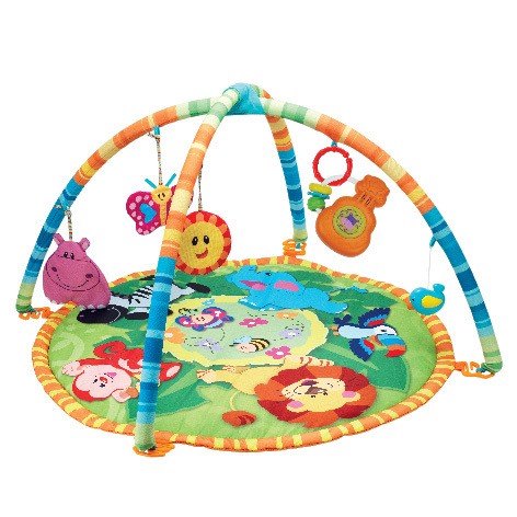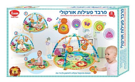 אוניברסיטה עם משטח משחק ולמידה לתינוק עם 5 צעצועים תלויים וניתנים לניתוק. הצעצועים הם של דמויות רכות וצבעוניות ורעשן גיטרה מנגן ומהבהב אורות וצלילים נעימים, הניתן לניתוק. מוצר שמפתח את חושי התינוק ומלמד אותו על דמויות ומרקמים שונים. מגרה את התינוק לשלוח ידיו אל הצעצועים המגרים את התינוק מבחינה חושית. מתאים החל מגיל לידה התינוק שוכב על הגב, דרך שכיבה על הבטן והרמת ראש ובשלב בו התינוק מתיישב, ניתן להסיר את הקשתות ולהשתמש כשטיח פעילות.