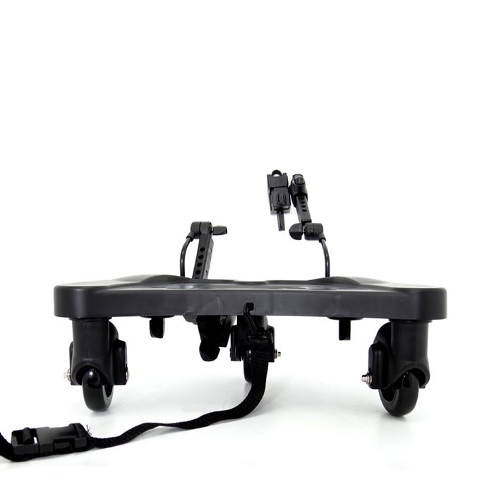 - הטרמפיסט מעוצב כך שיוכל להוביל ילד נוסף בעמידה, בין מושב העגלה למבוגר