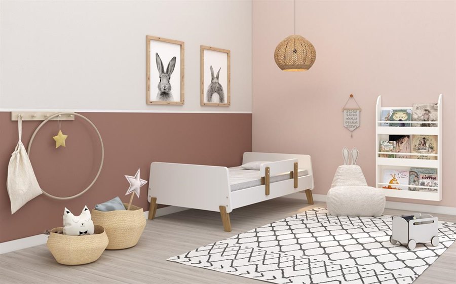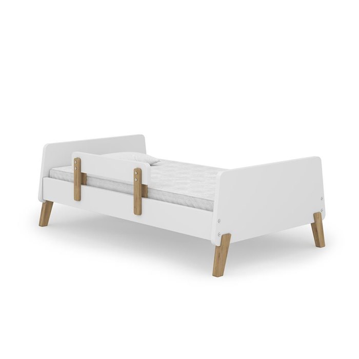 מיטת מעבר מעוצבת מיוז Muze עם מעקה נייד גדול ניתן להסרה - לבן סגל + מזרון