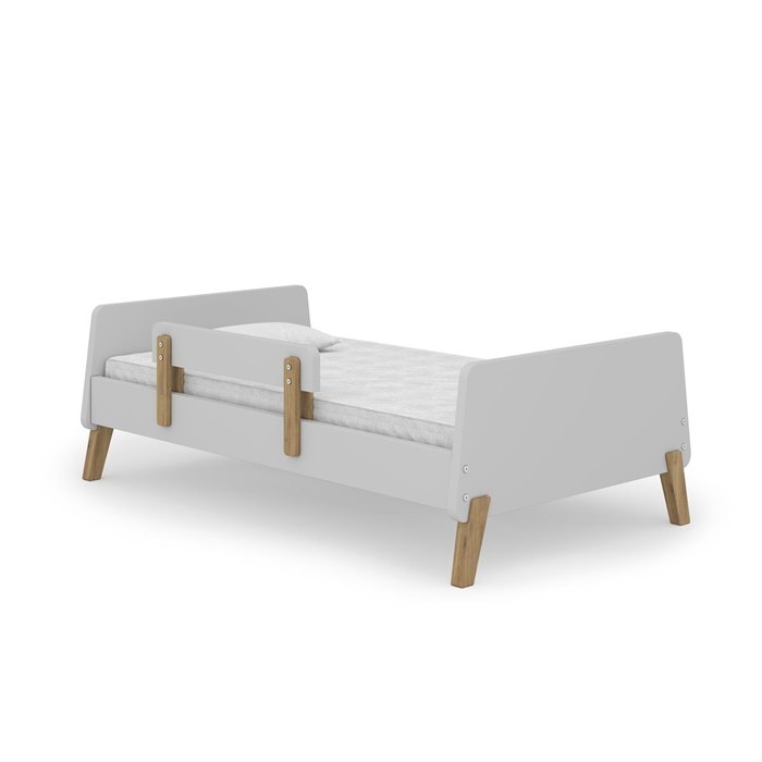 מיטת מעבר מעוצבת מיוז Muze עם מעקה נייד גדול ניתן להסרה - לבן סגל
