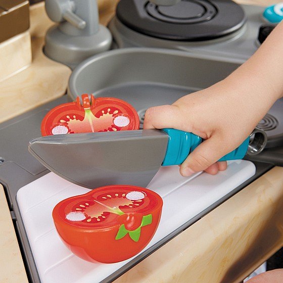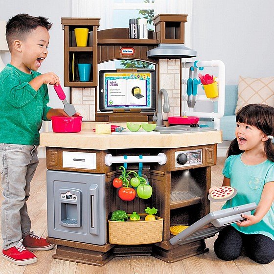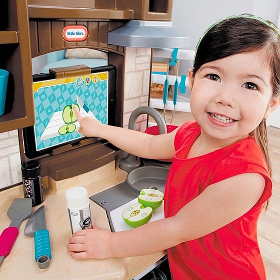 למבטח החכם - בשל ולמד חווית משחק ייחודית אינטראקטיבית המשלבת בין אפליקציה לאביזרים חכמים הנסרקים ומזוהים ע"י המטבח. את האפליקציה החינמית מורידים לטאבלט, אותו ניתן להציב בחלון השירות. לאפליקציה ארבעה מצבי משחק: חופשי, מתכונים, מוסיקה ושירים. כולל: תנור אפיה, מקרר, כיור עם ברז, קולט אדים, מתקן לתליית סכום, ארון עליון לאחסון, אדנית נשלפת לגידול ירקות, מזון ואביזרים. * הטאבלט אינו כלול.