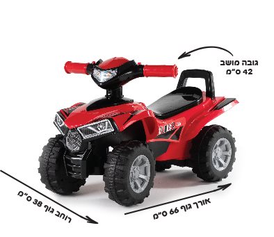 בימבה בצורת טרקטורון שטח לילדים לשעות של משחק מהנה. בימבה דוברת עברית ומשמיעה קולות הנעה ונסיעה. מגיעה עם תא אחסון תחת המושב. בימבה לגיל שנה פלוס. משקל מקסימלי 25 קילו. אורך 66 ס"מ רוחב 38ס"מ גובה מושב 42 ס"מ.