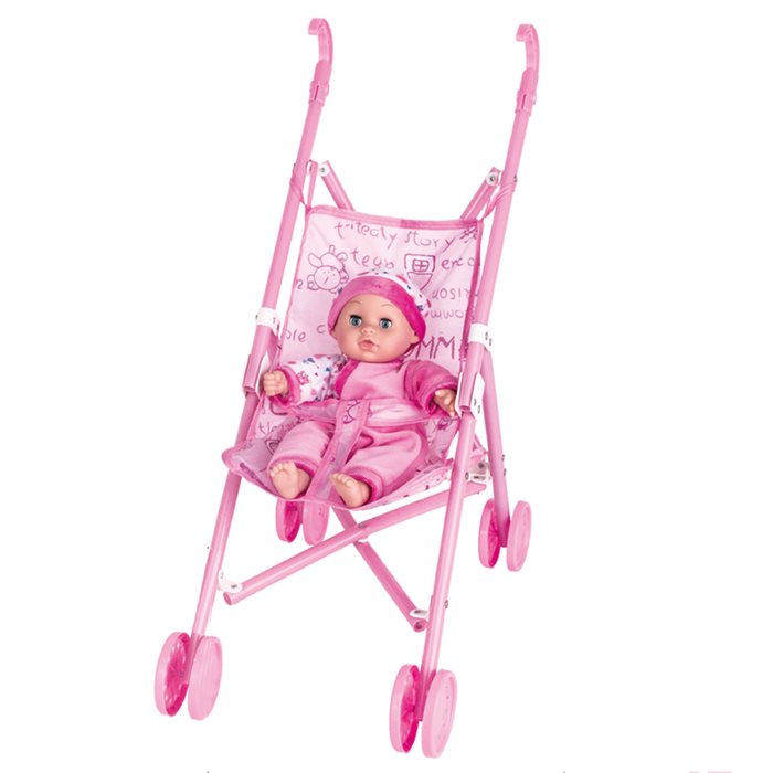 בובה רכה עם עגלת פלסטיק Soft Baby With Plastic Buggy