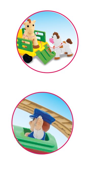 רכבת חיות החווה הינה רכבת צעצוע אורקולי המגיעה עם מסילות. בלחיצה קלה על ראש הנהג ישמע השיר: “כבר סידרנו הרכבת” והרכבת תנוע עד שתעצר מאליה, בלחיצה על ארובת הקטר ידלקו אורות מהבהבים וישמעו קולות צופר ונסיעה, בגילאים מוקדמים יותר ישנה אפשרות למשחק ללא המסילות כצעצוע מעודד זחילה. מגיע עם מילות השיר + מדבקות לחלונות הקטר. מידות: מסילה אחת 130 ס"מ * 66.6 ס"מ מסילה שנייה: 66.6 ס"מ * 66.6 ס"מ. צעצוע לגיל שנה פלוס