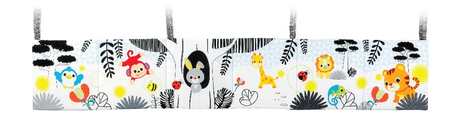 פעלולון למיטה דו צדדי ספארי משמש גם כספר בד לתינוק ומגיע עם דמויות של חיות ספארי שונות המעוררות את סקרנות התינוק. משמש משני צידו: האחד איורים צבעוניים ומרהיבים ומצידו השני מרקמים שונים לגירוי סקרנות התינוק: מראה, נדנדו את הקוף המשמש כרעשן, בריכה עשויה מבד רך ונעים למגע, כנפי התוכי והדשא בולטים למגע. הספר בד דו צדדי ספארי הינו צעצוע התפתחות מגיל 0 חודשים +