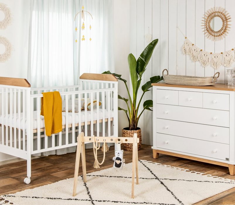 מיטת תינוק גאיה לבנה + אלון אדום SEGAL