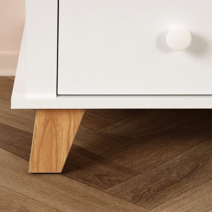 צבע גוף: לבן עם רגלי עץ ופלטה עליונה בדמוי אלון אדום.