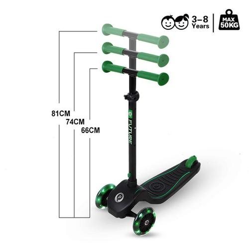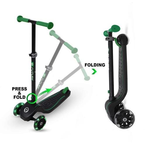 קורקינט פיוצ’ר FUTURE מבית Q PLAY נהדר לרוכבים מתחילים מגיל 3 ועד גיל 8. לקורקינט ידית בעלת 3 מצבי גובה ואפשרות קיפול כך שהוא תופס הרבה פחות מקום בתא המטען.