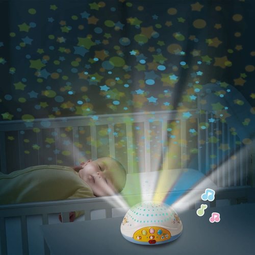 מובייל משולב עם מקרן ניתן לניתוק, המובייל ניתן להתקנה על גבי מיטת תינוק או עריסה, אפשרות לטיימר, כולל 58 קולות טבע ומנגינות מרגיעות מבית VTECH