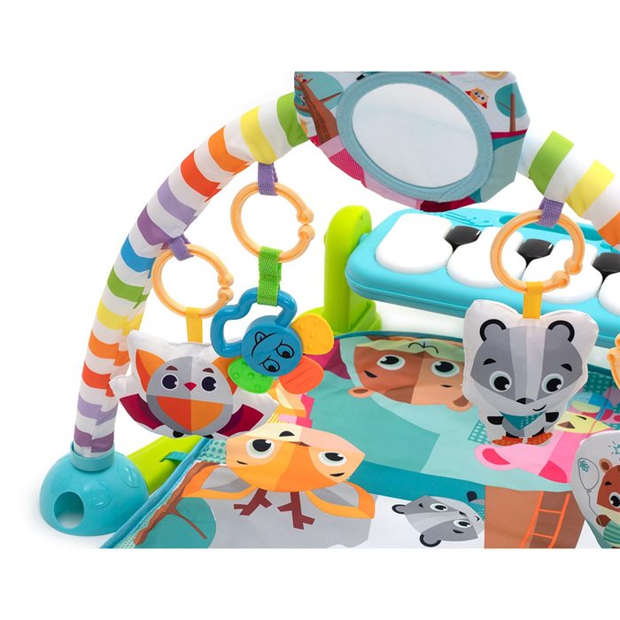 המשטח כולל קשת פעילות עם 5 צעצועים תלויים - ביניהם מראה, נשכן, בובה מצפצפת