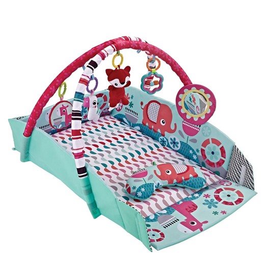2. בחודשים הראשונים - משטח עם כרית תמיכה המעודד שכיבה על הבטן ואימון שרירי הצוואר להרמת הראש ומעודד תנועה וזחילה