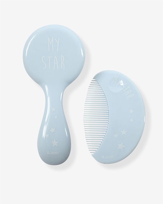 סט מברשת ומסרק לסירוק התינוק בימיו הראשונים. מברשת השיער הנה בעלת סיבים רכים במיוחד. מתאים לגילאי +0