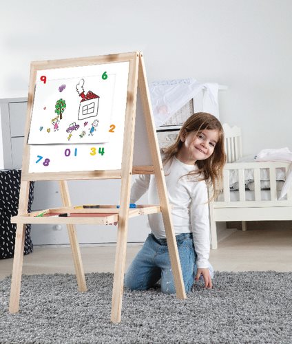 לוח ציור 3 ב1 צד אחד משמש כלוח גיר והילד מרגיש כצייר צעיר, צד שני לציור עם טוש מחיק ומשמש גם כלוח מגנטים. מצוין לפיתוח הדמיון והיצירתיות אצל ילדים. מגיע עם טוש מחיק ומחק. מידות המוצר: 46*90 ס"מ