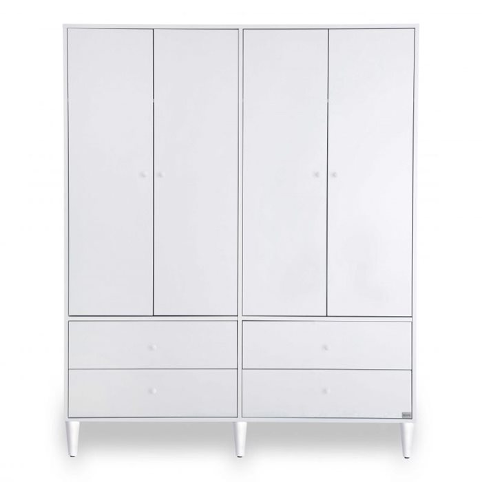ארון הוא פריט משמעותי בחדר ולכן המשימה של המעצבים שלנו היתה לפתח ארון גדול ולא מאיים – ואכן ניתן לראות כי העיצוב המינימסליטי מצליח לשמור על נינוחות ולהשאיר את החדר מאוורר. ארון אודם עם 4 דלתות מעוצב כך שניתן להשתמש בו ל 2 ילדים ולהעניק סמטריה מושלמת בו זמנית. הפשטות הנקייה של הארון בשילוב ידיות לבנות נוחות המשתלבות בשקט מייצרות עיצוב עכשווי על זמני. העיצוב לא מעמיס ומעניק לפשטות יתרון בולט.הארון מתאים לסגנונות עיצוב רבים והוא מתוכנן בצורה חכמה. סידור הארון הפנימי גמיש וניתן להתאים אותו לצרכים המתפתחים של התינוק וההורים.