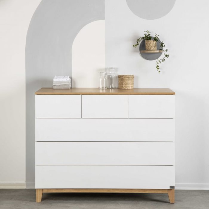 שידת ארט בעיצוב קלאסי מגיעה עם חלוקה של המגירות באופן בו הם מייצרים סדר וארגון פונקציונאלי למוצרי ובגדי התינוק, כך שיהיה לכם נוח לחתל ולהחליף בגדים על השידה.