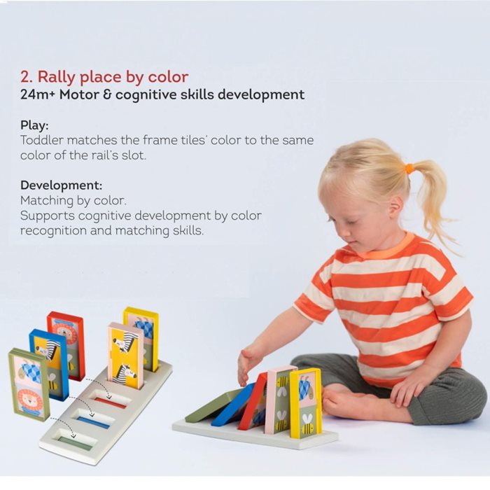 - מעודד התפתחות על ידי זיהוי צבעים והתאמת מיומנויות – מתאים מגיל 24 חודשים.התאמת כמויות וצורות עוזר לפעוט לזהות דפוסים, שם צורות בסיסיות.