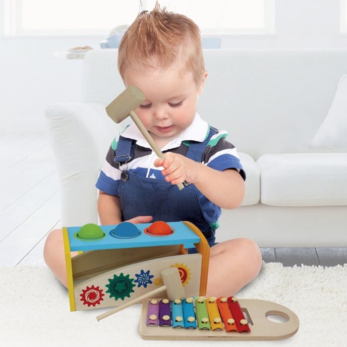 הך פטיש וקסילופון 2 ב- 1 העשוי מעץ איכותי.