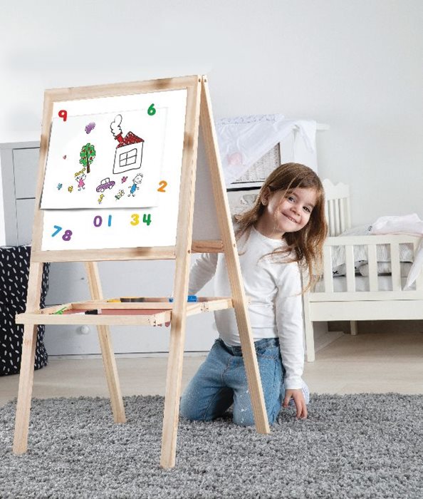 לוח ציור המשמש כלוח גיר המאפשר לילד להרגיש כצייר צעיר, וצידו השני של הלוח כולל לוח ציור לבן עם טוש מחיק, המשמש גם כלוח מגנטים. משחק מצוין לפיתוח הדמיון והיצירתיות של הילדים.