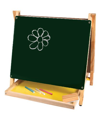לוח ציור לילדים דו צדדי; צד אחד המשמש כלוח גיר ותופסנים לציור על נייר והילד מרגיש כצייר צעיר, וצידו השני של הלוח משמש לציור עם טוש מחיק.