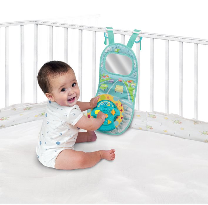 כולל הגה, מראה, לחצנים בצורת מפתח וידית הילוכים. ברגע שהתינוק לוחץ נשמעים קולות המדמים פעולות הנעת רכב ונסיעה, ולחצנים נוספים המשמיעים מנגינות משעשעות שהתינוקות אוהבים.