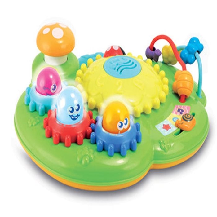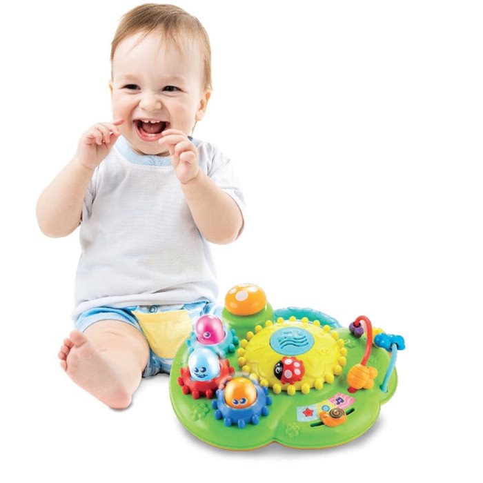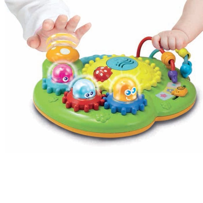 פעילויות משעשעות לפעוט שלך במוצר אחד, הכוללות 4 לחצנים עם מחוות קוליות ו-4 גלגלי שיניים מסתובבים.