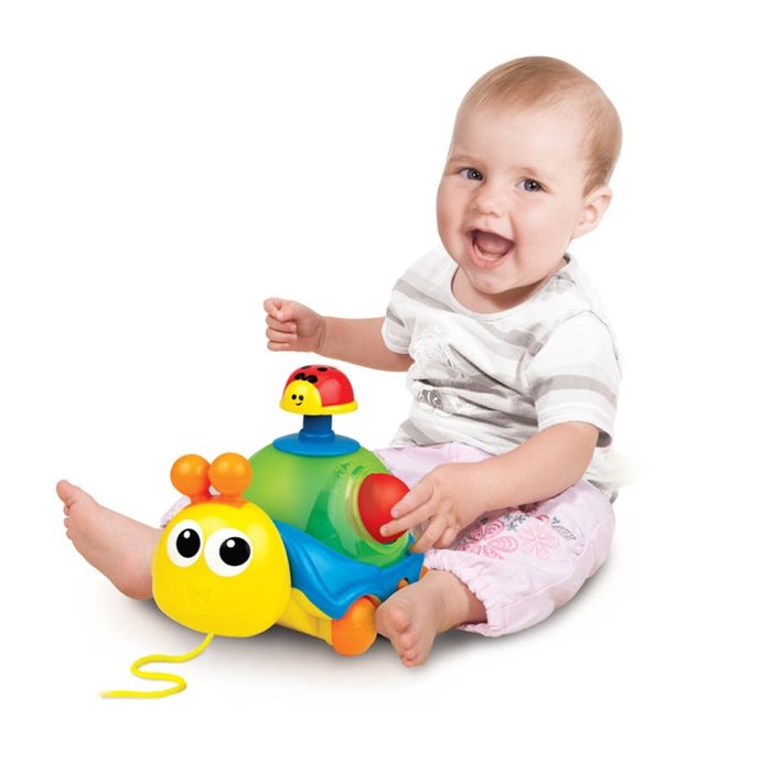 מעודד הליכה לתינוק בדמות חילזון מתוק, הינו צעצוע התפתחות המעודד הבנה של פעולה ותוצאה.