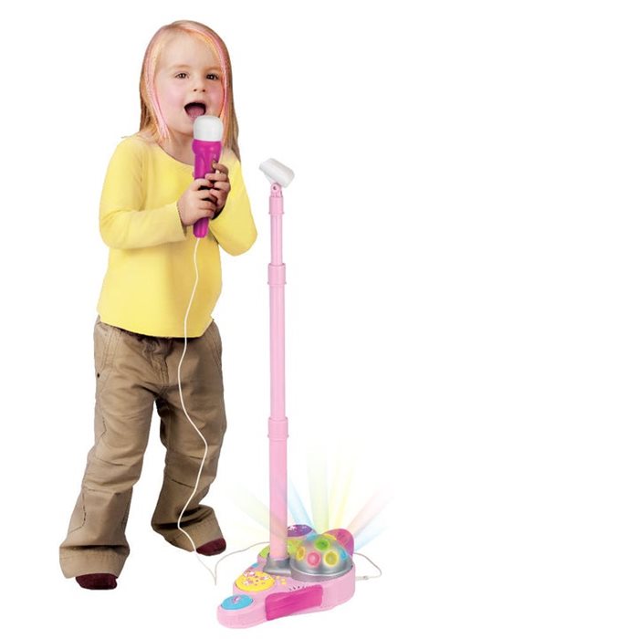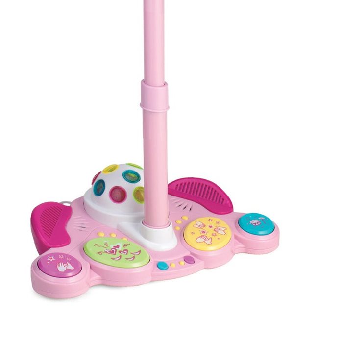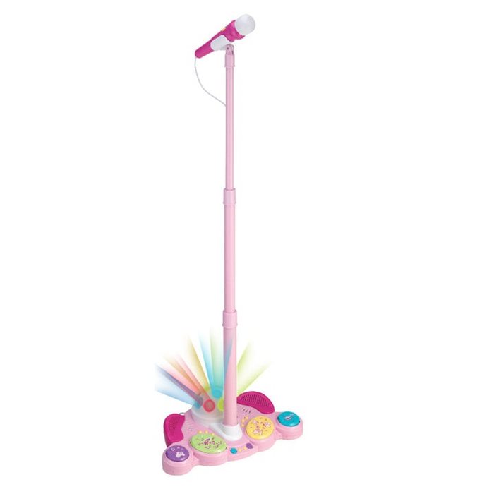 מעמד מפואר למיקרופון, שעל בסיסו 4 כפתורים לשינוי צלילי הנגינה ;כלי נגינה או צלילים מעולם ההופעות על מנת להעצים את חווית הילד בשעת המשחק במוצר. כולל כדור דיסקו המחליף אורות ומיקרופון נשלף.