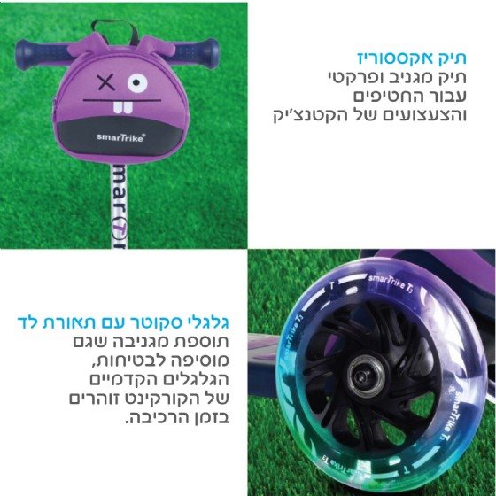 מנגון T-lock ייחודי מאפשר שני מצבי רכיבה על קורקינט סמארט טרייק: סקוטר למתחילים ולמתקדמים. מצב ׳סיבוב חופשי׳ מאפשר רכיבה בסגנון חופשי לרוכבי קורקינט מנוסים.