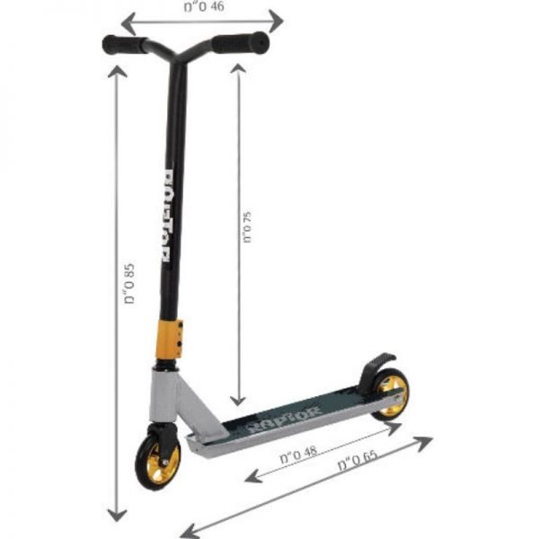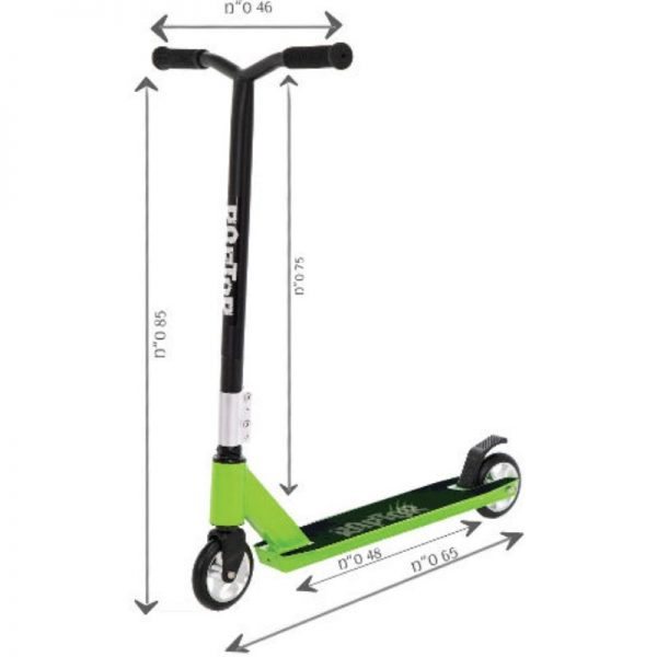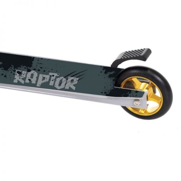 עם בלם אחורי מתכתי ומשטח עמידה ברוחב 105 מ"מ העשוי מפלדה אלסטית העמידה בזעזועי הדרך.