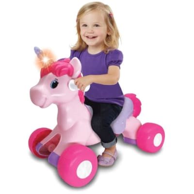 בימבה בדמות חד קרן שהנסיכות שלנו כל כך אוהבות. מגיעה בעיצוב מדהים וייחודי ובצבעים ורוד וסגול, עם אורות מהבהבים ומנגינות משעשעות.