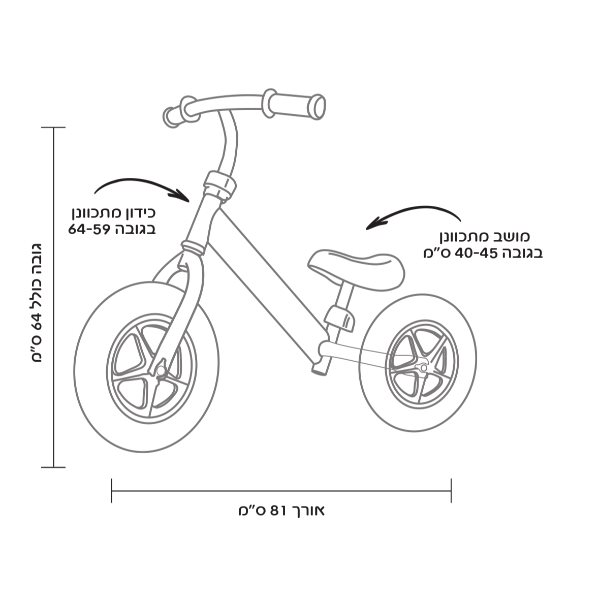 אופני איזון מתכווננים הגדלים עם הילד שלך. מגיעים עם מושב וכידון הניתנים להגבהה או הנמכה.
