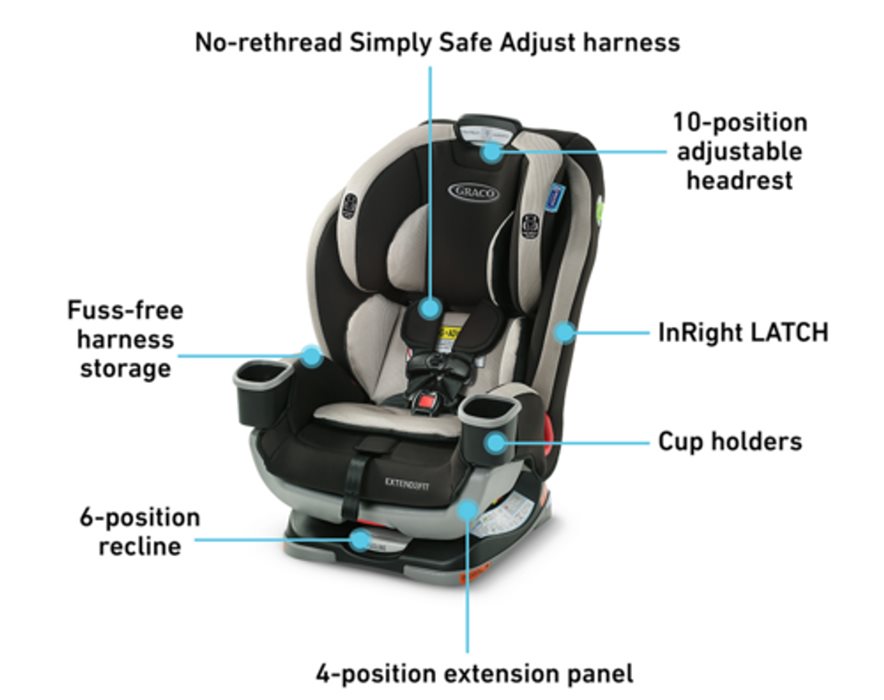 כיסא בטיחות דו-כיווני אקסטנד טו פיט Extend2Fit מבית GRACO עם טווח גילאים מוגדל בהתקנה נגד כיוון הנסיעה ומדרך רגליים לנסיעה נוחה.
