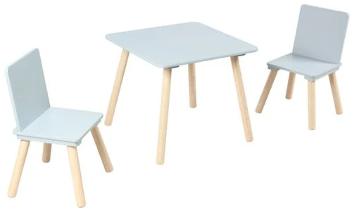 סט ישיבה הכולל שולחן פעילות ושני כיסאות מעץ
