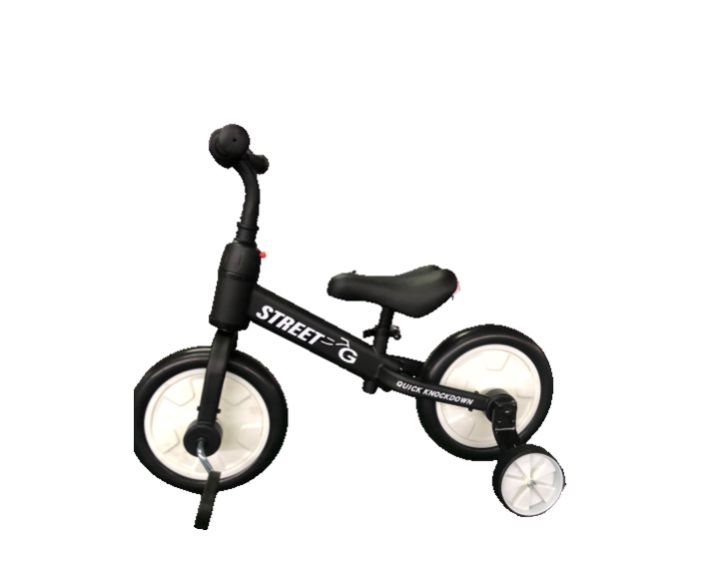 האופניים מגיעים עם פדלים ועם גלגלי עזר המתחברים בקליק קל ובכך הופכים מאופני איזון לאופניים רגילים