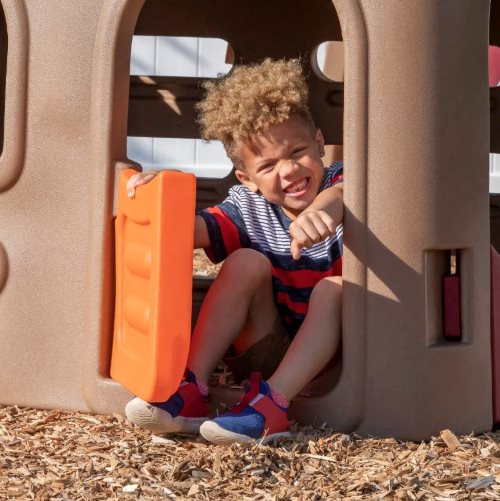 הילדים ייהנו לטפס במדרגות ולהתגלש במגלשה, להתנדנד בנדנדות ולקיים פגישות סודיות במסתור