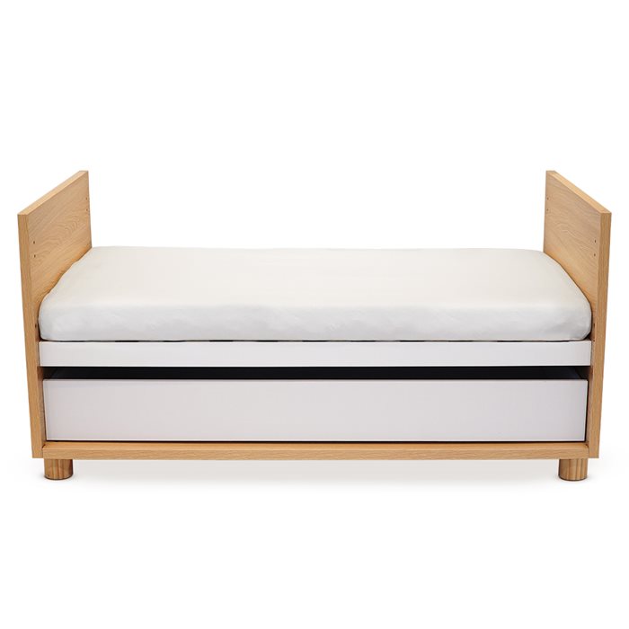 מיטת קורי מותאמת לשלבי ההתפתחות והצמיחה של התינוק והופכת למיטת מעבר המתאימה בגובה לתנועה עצמאית ובטוחה של הפעוט. פתרון מודולרי שהופך אותה לייחודית ואהובה.
