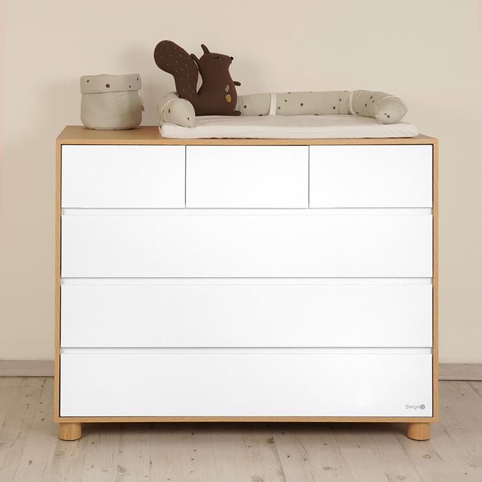 בשידת טיילור שילוב של שני סוגי המגירות, שלוש מגירות רחבות ושלוש מגירות צרות, עם גישה נוחה לכל פריט, לשימוש אופטימלי וניצול מקסימלי (מומלץ לאחסן במגירות הצרות פריטים שבהם נעשה שימוש רב יותר כמו: חיתולים, מגבונים, מוצצים, בגדים וכו).