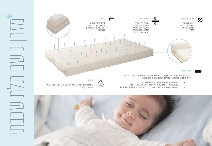 למזרן 3 שכבות בעלות תכונות קושי שונות המאפשרות את התאמתו לכל גיל