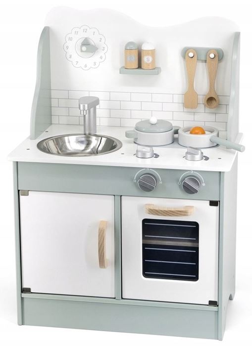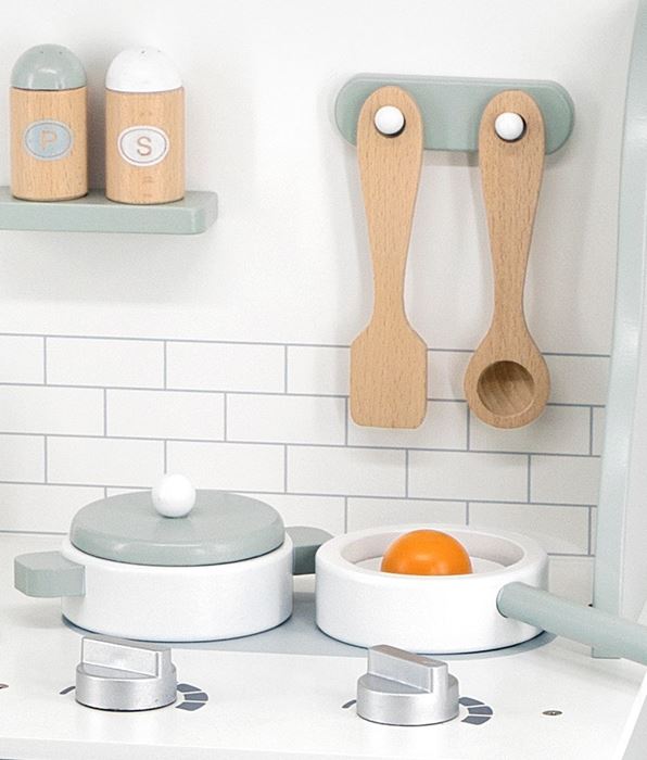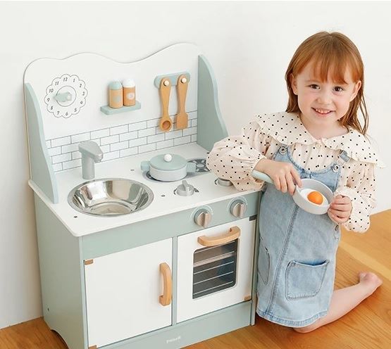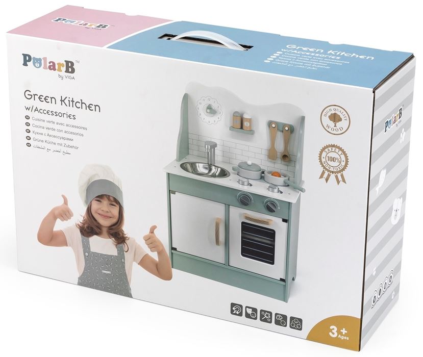 מטבח עץ ויגה לילדים עם תנור כיור כיריים ארון ו-8 אביזרים - ירוק פסטל Viga
