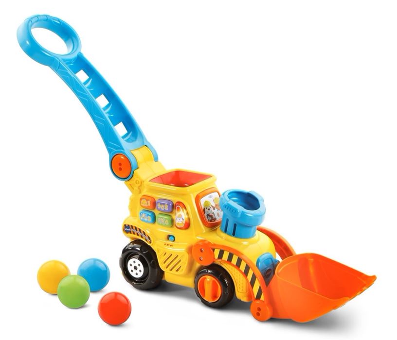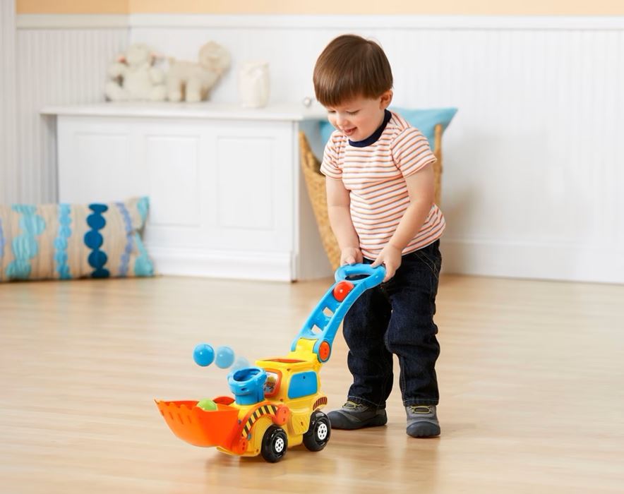הדחפור מעודד תנועה וכישורים מוטוריים כאשר כדורים צבעוניים צצים דרך ארובת “העשן”, לתוך כף האיסוף ובחזרה.