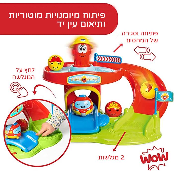 - הצעצוע כולל: כבאית ו-2 כדורים ומגלשות הכוללות מחסום