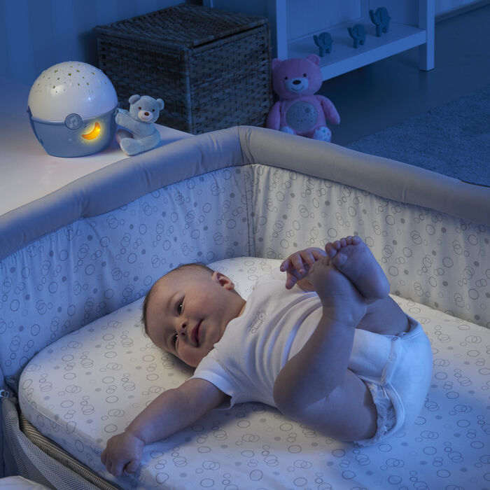 - כדור הקסם המושך את תשומת ליבו של ילדך- הוא יעקוב בעיניו אחר הכוכבים המסתובבים והירח המוקרנים לתקרת החדר – פעולה שתעסיק ותרגיע אותו