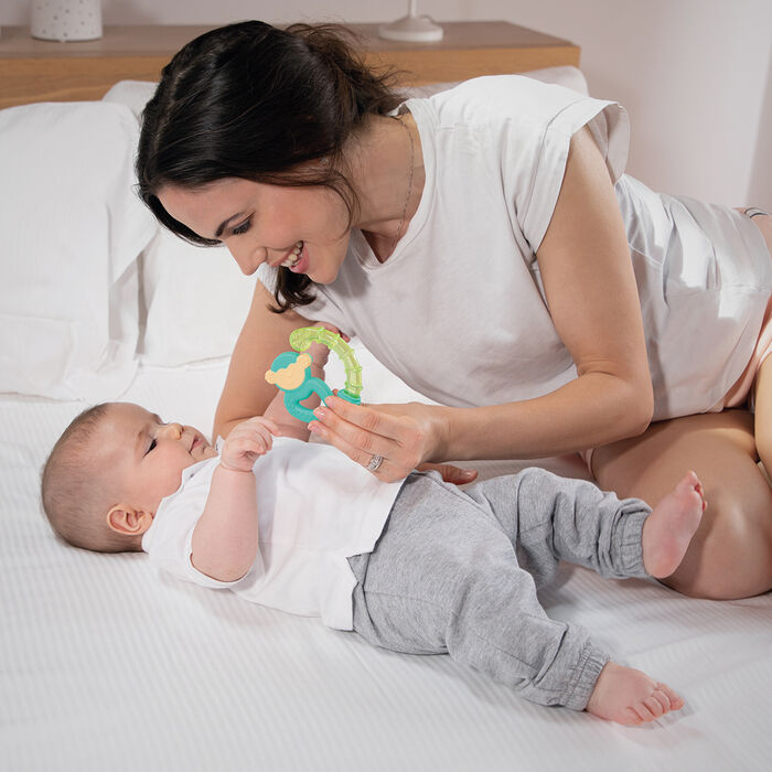 נשכן קירור בצורת קוף תוכנן במיוחד כדי להרגיע את אי הנוחות הנגרמת מהופעת השיניים הראשונות ולהעניק אפקט מרענן לחניכיים של הקטנטנים