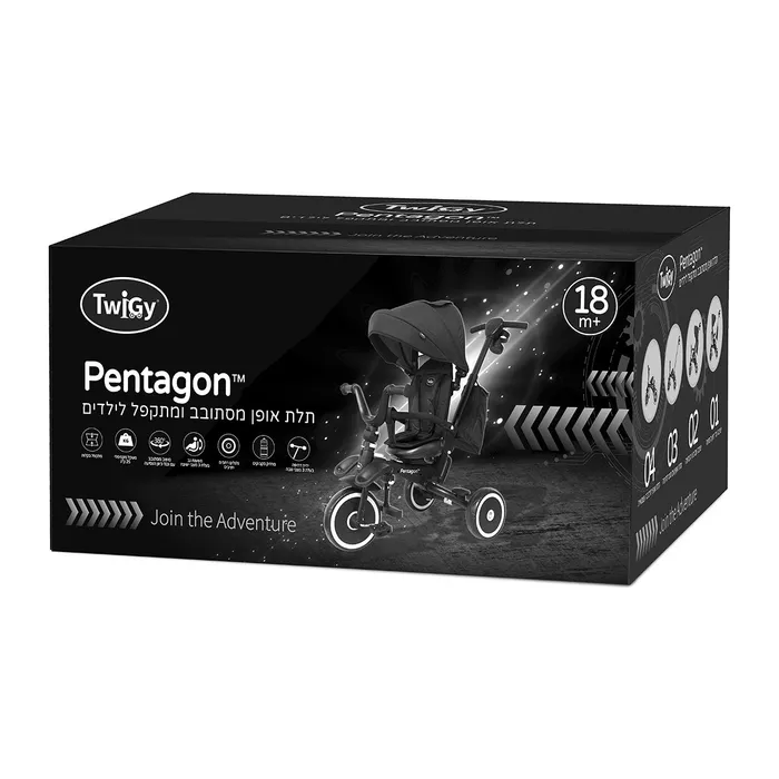 תלת אופן פנטגון טוויגי מסתובב, מתקפל ומותאם לשלבי ההתפתחות של התינוק